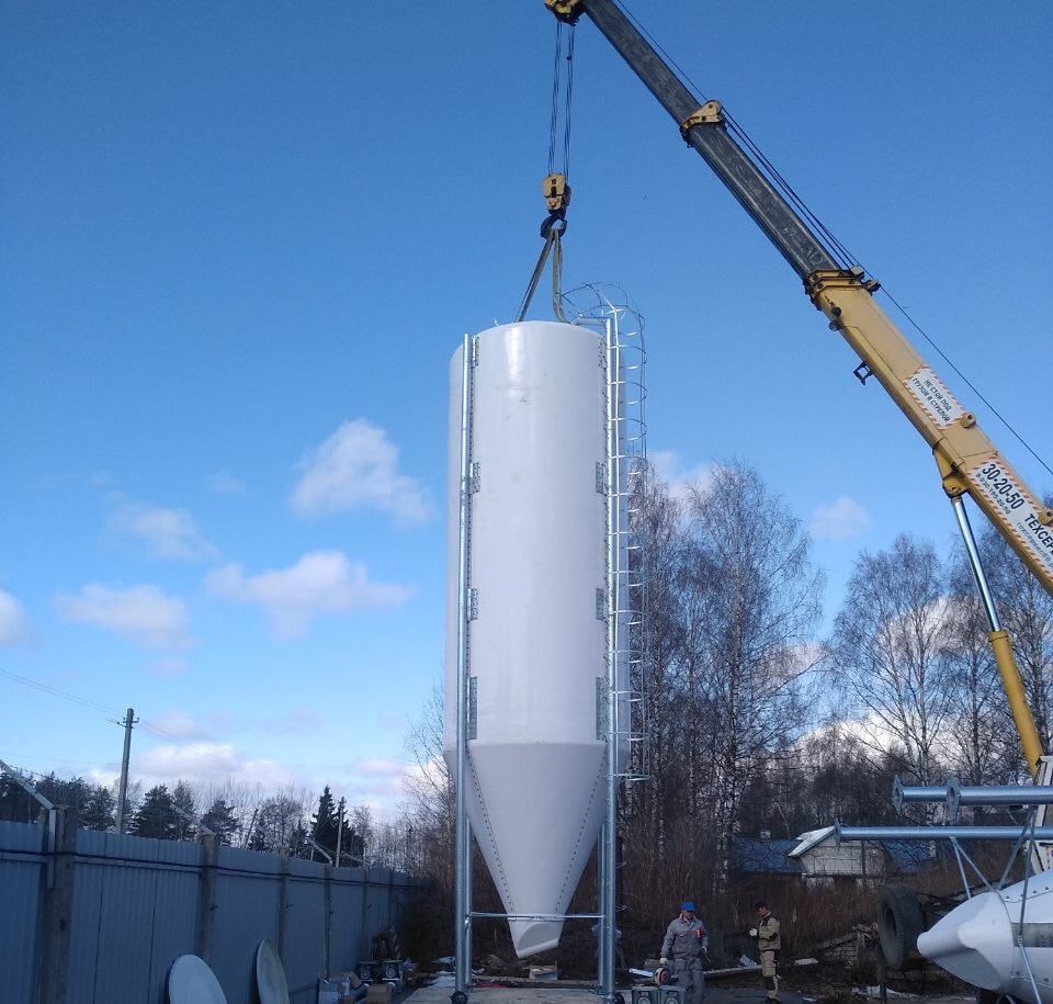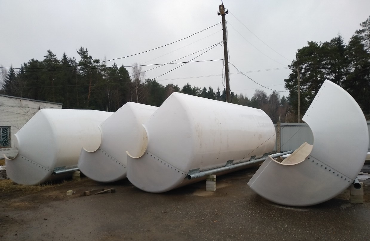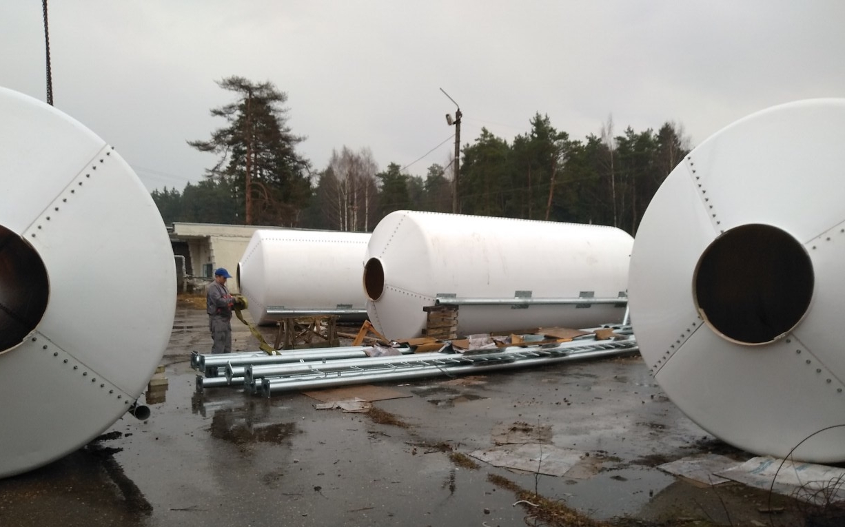 Dostarczono i zamontowano cztery silosy z włókna szklanego o pojemności 33,5 tony.