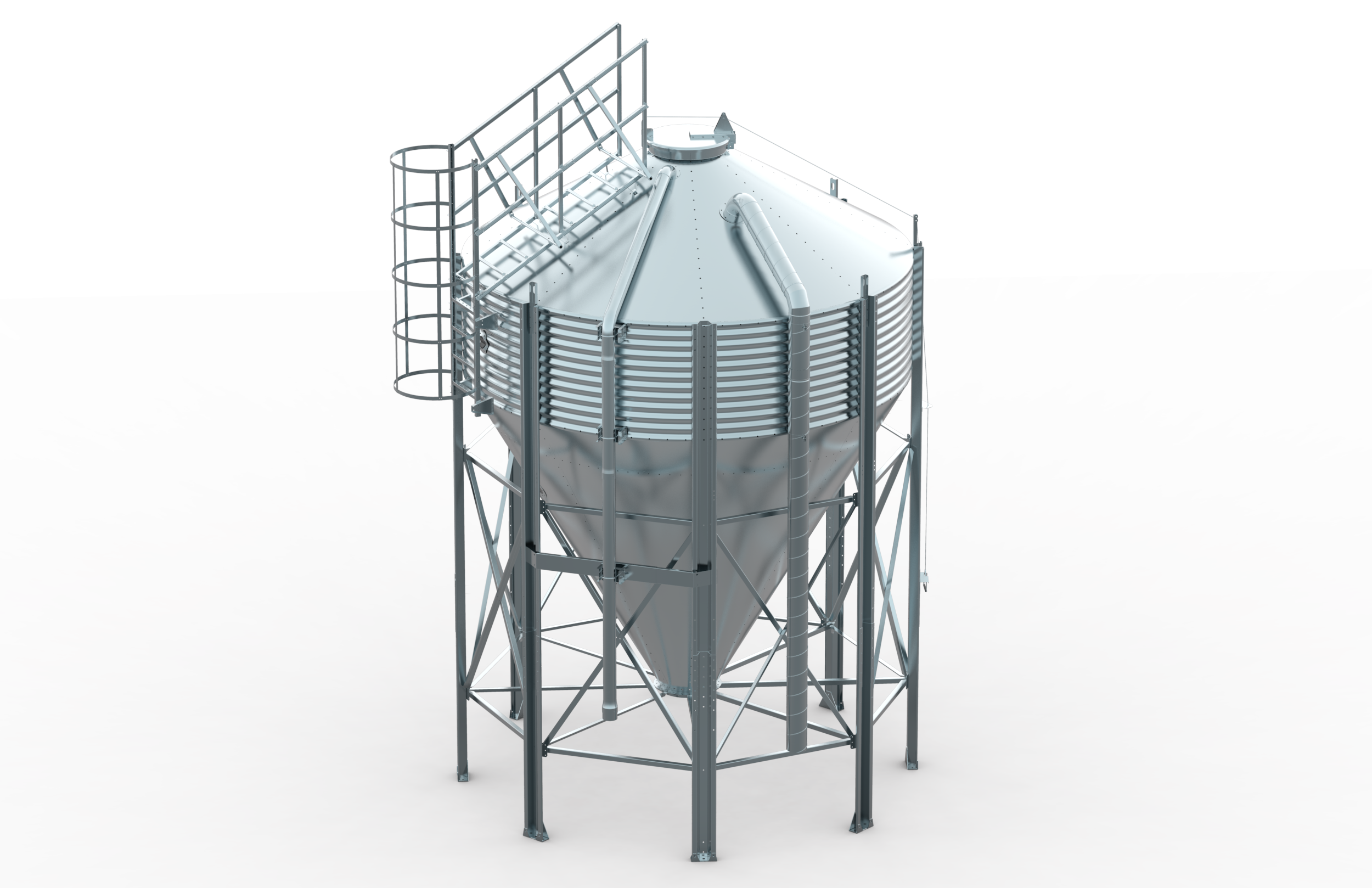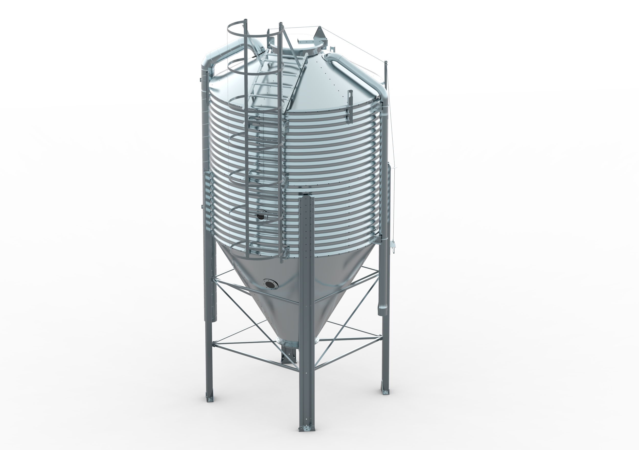 Dostawa i montaż silosów z włókna szklanego EUROSILOS, z czujnikami tensometrycznymi i sterowaniem CTI.