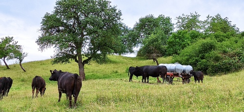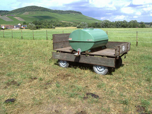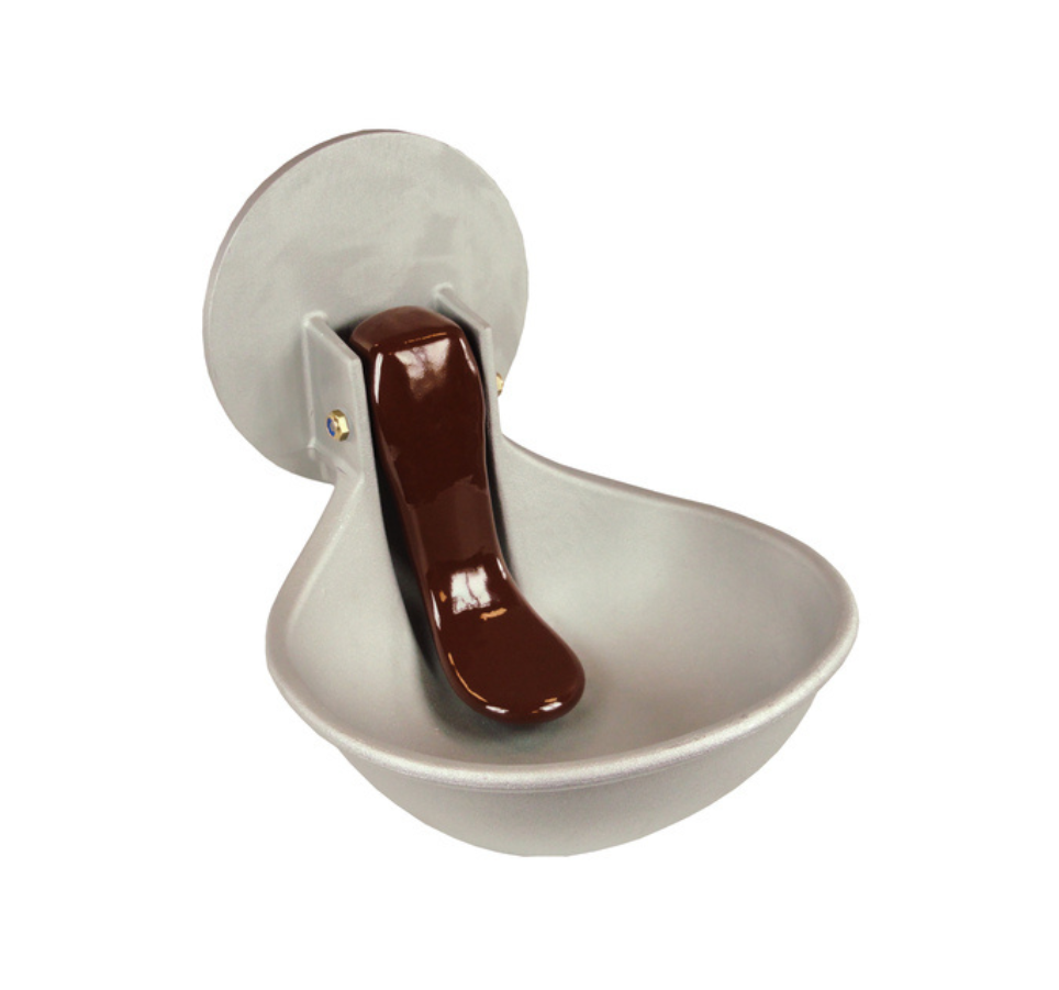 – Duża aluminiowa misa (Ø 230 mm) z przyłączem kołnierzowym do montażu do beczki z wodą na pastwiskach