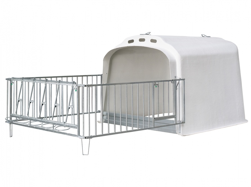 - Zdejmowane ogrodzenie paszowe ułatwia zamykanie cieląt w boksie.