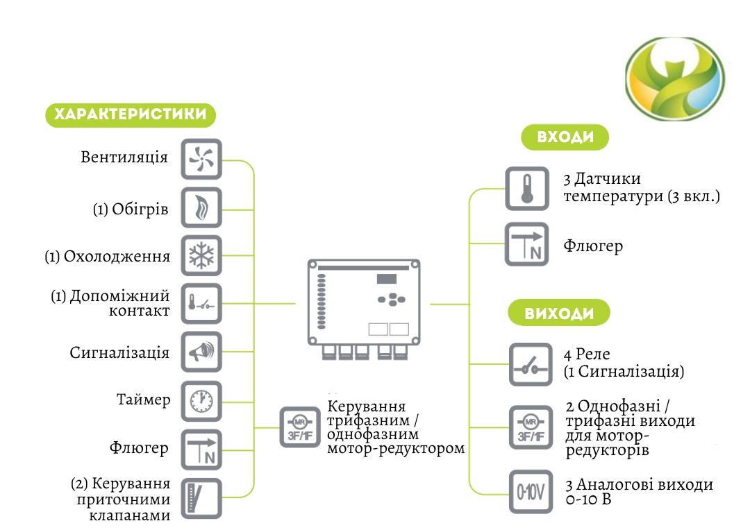 • Sterowanie 2 wlotami powietrza A i B oraz wentylacją pomieszczenia za pomocą wyjścia analogowego 0-10 V.