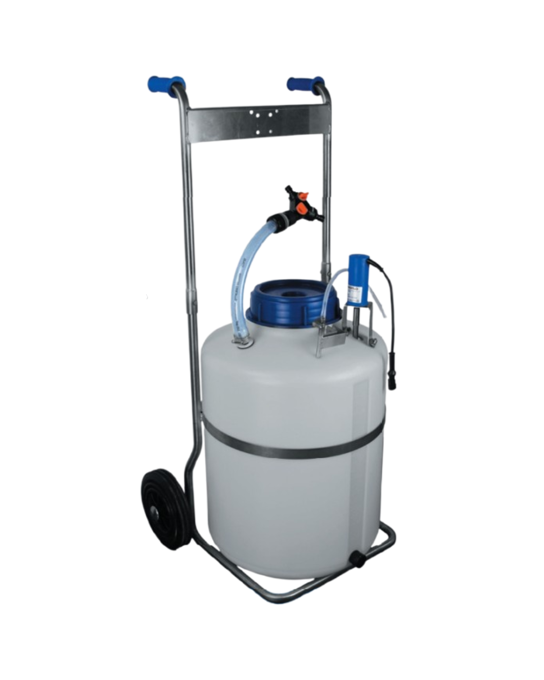 Zbiornik do mieszania leków jest przeznaczony do wydajnego dozowania roztworów leczniczych i witaminowych w systemach dostarczania wody w gospodarstwach rolnych. Mieszalnik i rura ssąca ze stali nierdzewnej, zbiornik z LDPE z zasilaniem 24 V i wyłącznikiem czasowym. Dno wewnętrzne nachylone pod kątem 5°, co pozwala na bardziej efektywne wykorzystanie zawartości.
