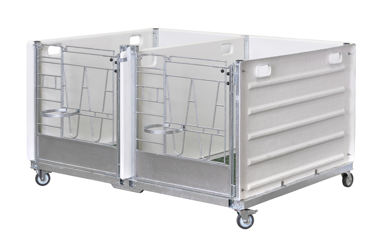 - Open Top Premium Duo ma oddzielną przegrodę, która umożliwia połączenie dwóch cieląt bez konieczności ich przenoszenia.
