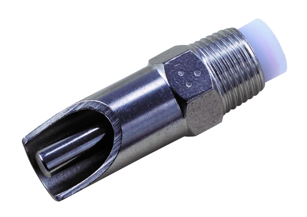 Poidło ma regulowany otwór 0,8 – 1 – 2 mm. Dostępne również: 2 – 3 – 4 mm, bez możliwości regulacji. Nadaje się do systemów wysokiego lub niskiego ciśnienia.