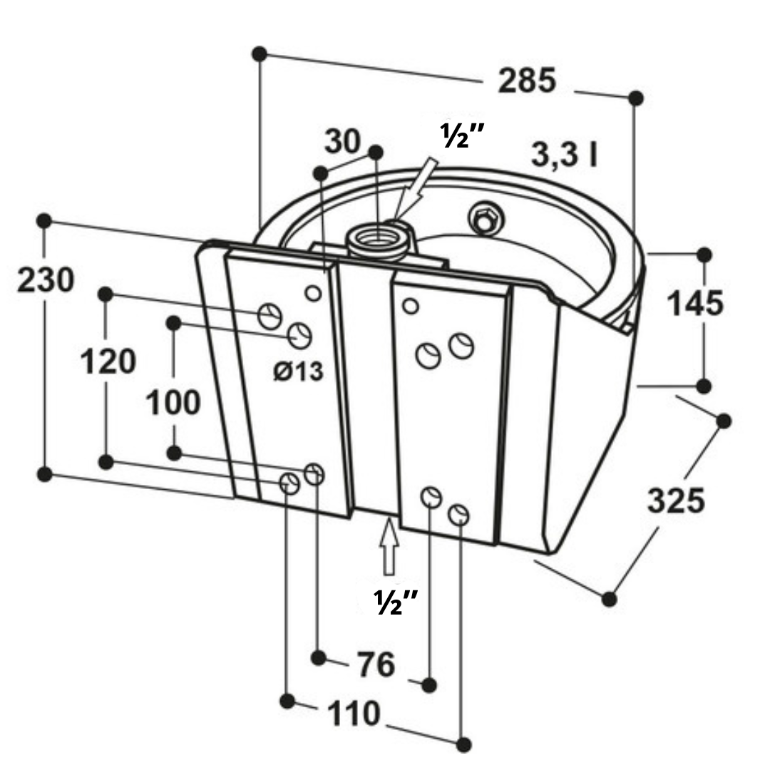 Model ten jest również dostępny z zaworem rurowym ze stali nierdzewnej (gwint wewnętrzny ¾”).