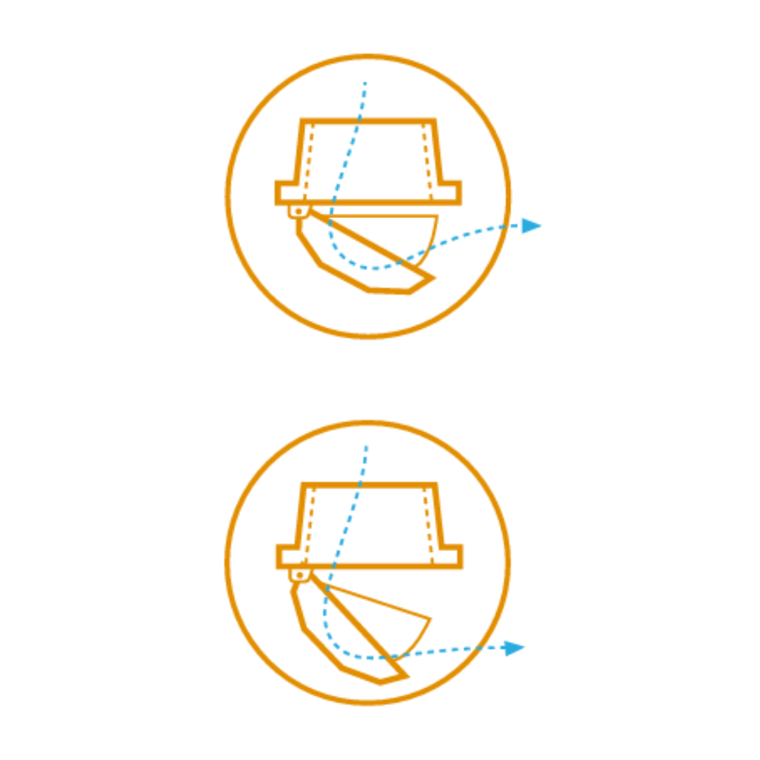 Wloty powietrza sufitowe. Ten wlot powietrza sufitowy ma zakrzywiony kształt,który zapewnia dobry wyrzut powietrza wzdłuż sufitu, a następnie jego stopniowe opadanie. Uszczelki na całym obwodzie obudowy zapobiegają przeciekom powietrza, gdy wloty są zamknięte. Wlot nie wykorzystuje sprężyn — otwiera się pod wpływem naturalnego działania siły grawitacji.