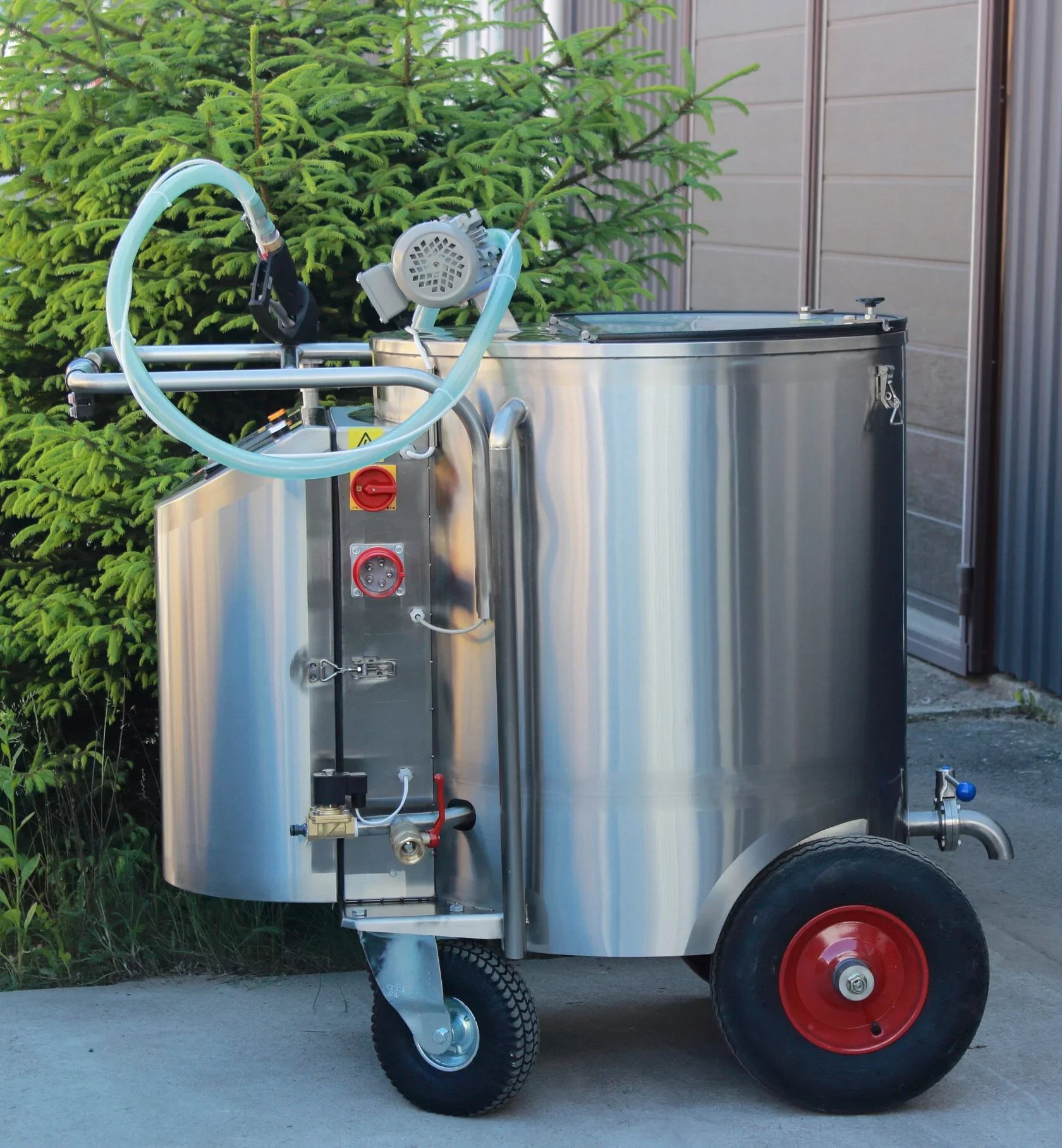 Komfortowa eksploatacja – niezależnie od drogiW gospodarstwie rolnym zwykle konieczne jest rozwożenie kilkuset litrów mleka lub PZM do cieląt każdego dnia. Dzięki wysokiej jakości podstawie z trzema lub czterema kołami, taksówka do mleka może pokonywać duże odległości, nawet w terenie, przy niewielkim wysiłku ze strony personelu. Może być bezpiecznie używana w każdych warunkach pogodowych – dzięki automatycznemu sterowaniu i prawidłowo obliczonemu środkowi ciężkości, przewrócenie jest wykluczone. Ponadto taksówka do przewozu mleka ma mały promień skrętu i mocne opony.