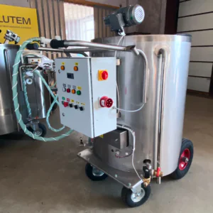 Taksówka do mleka SALUTEM może być wyposażona w mieszadło do mleka pełnego, aby zapewnić równomierną pasteryzację i zapobiec przywieraniu płynów. Do przygotowania pełnotłustego preparatu mlekozastępczego stosuje się specjalne mieszadło, aby zapewnić całkowite rozpuszczenie mleka w proszku i uniknąć tworzenia się grudek. Każde mieszadło jest wyposażone w europejski silnik elektryczny.