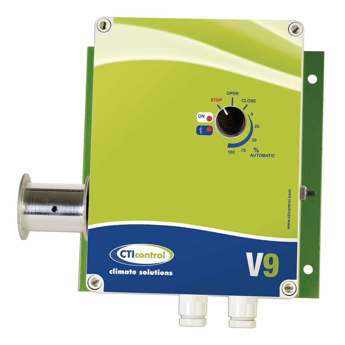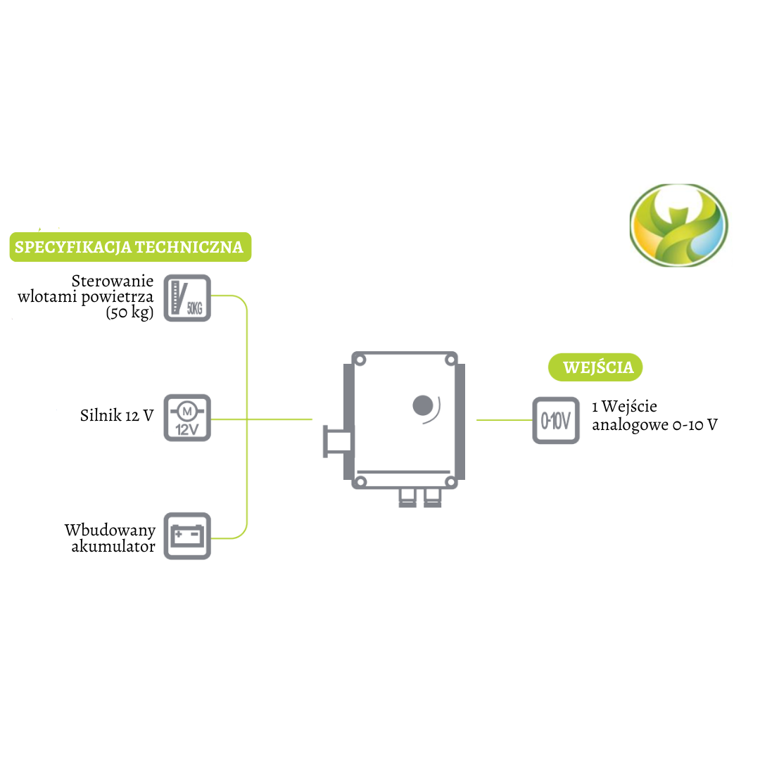 • Do sterowania wystarczy sygnał 0-10 V. Może być również sterowany zdalnie.