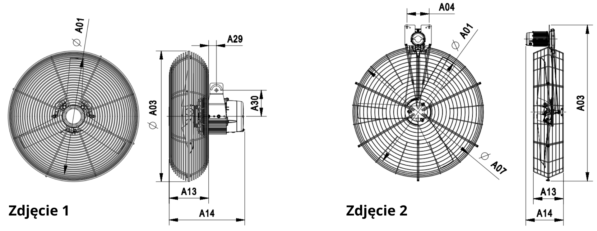 – Wsporniki montażowe dla wentylatorów 50, 63, 71 i 92 cm