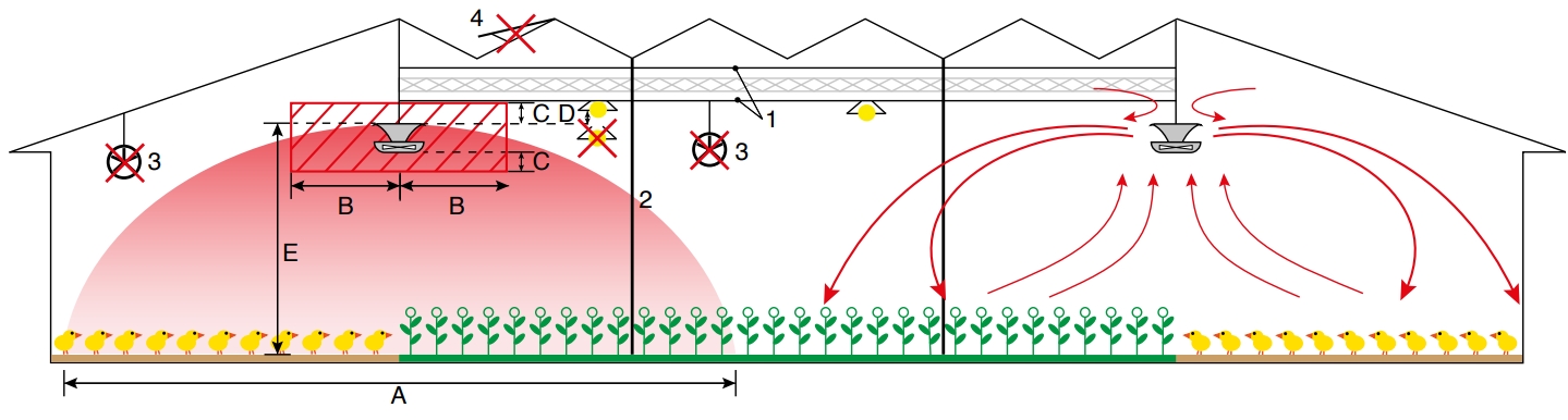 Ponadto, stała niska prędkość powietrza jest wytwarzana blisko ziemi. Nie tylko poprawia to klimat w szklarni, ale także pomaga poprawić warunki życia, na przykład drobiu.