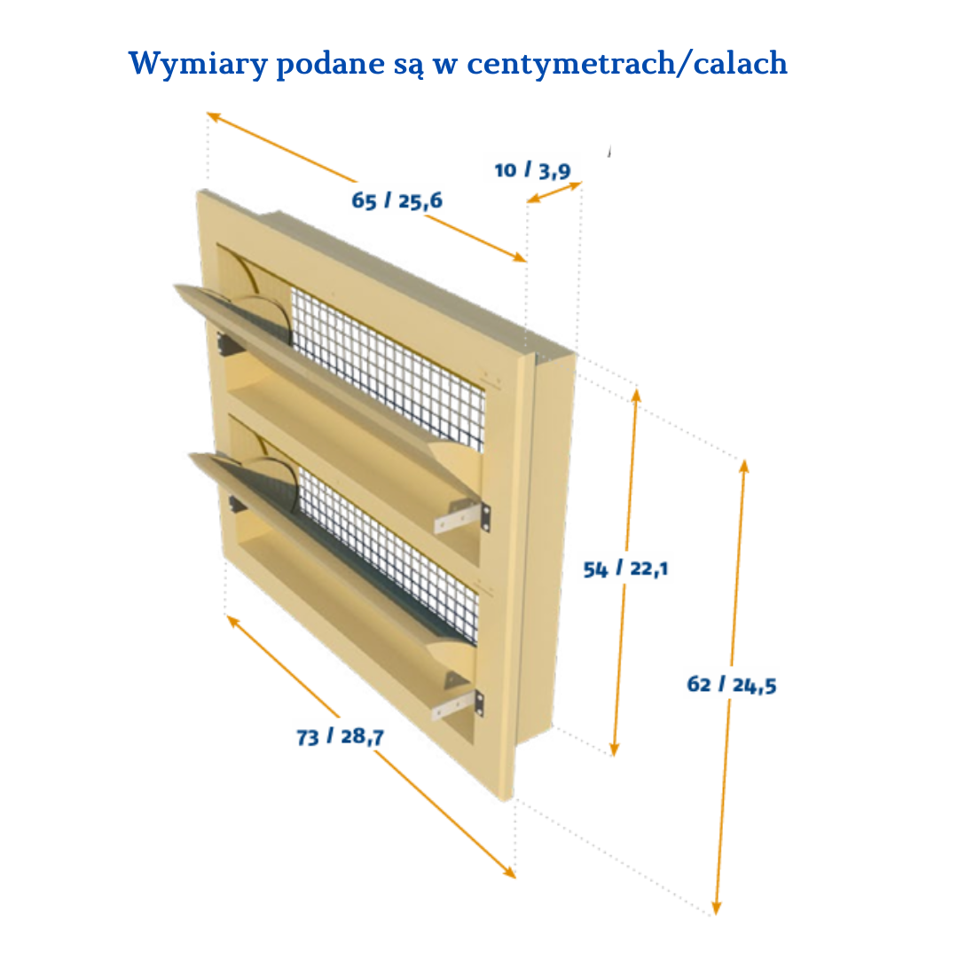 Wlot ze środkowym zawiasem. Ten wlot ze środkowym zawiasem został zaprojektowany tak, aby po otwarciu powyżej 35% umożliwić przepływ powietrza również pod wewnętrzną klapą. Dzięki temu strumień powietrza może być kierowany w dół, w stronę zwierząt, zapewniając efekt chłodzenia podczas maksymalnej wentylacji.
