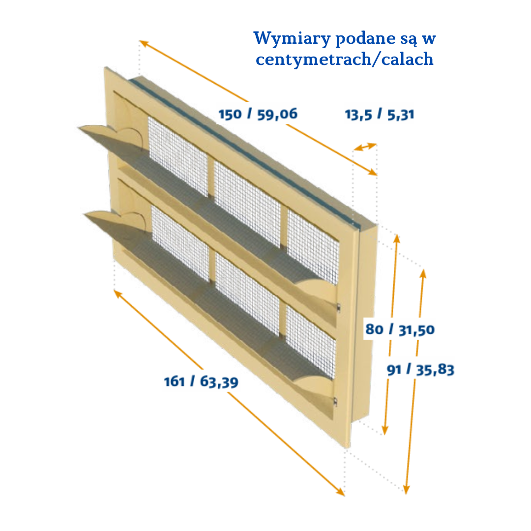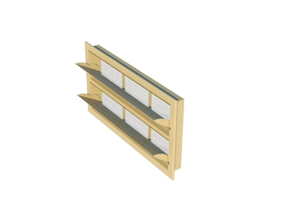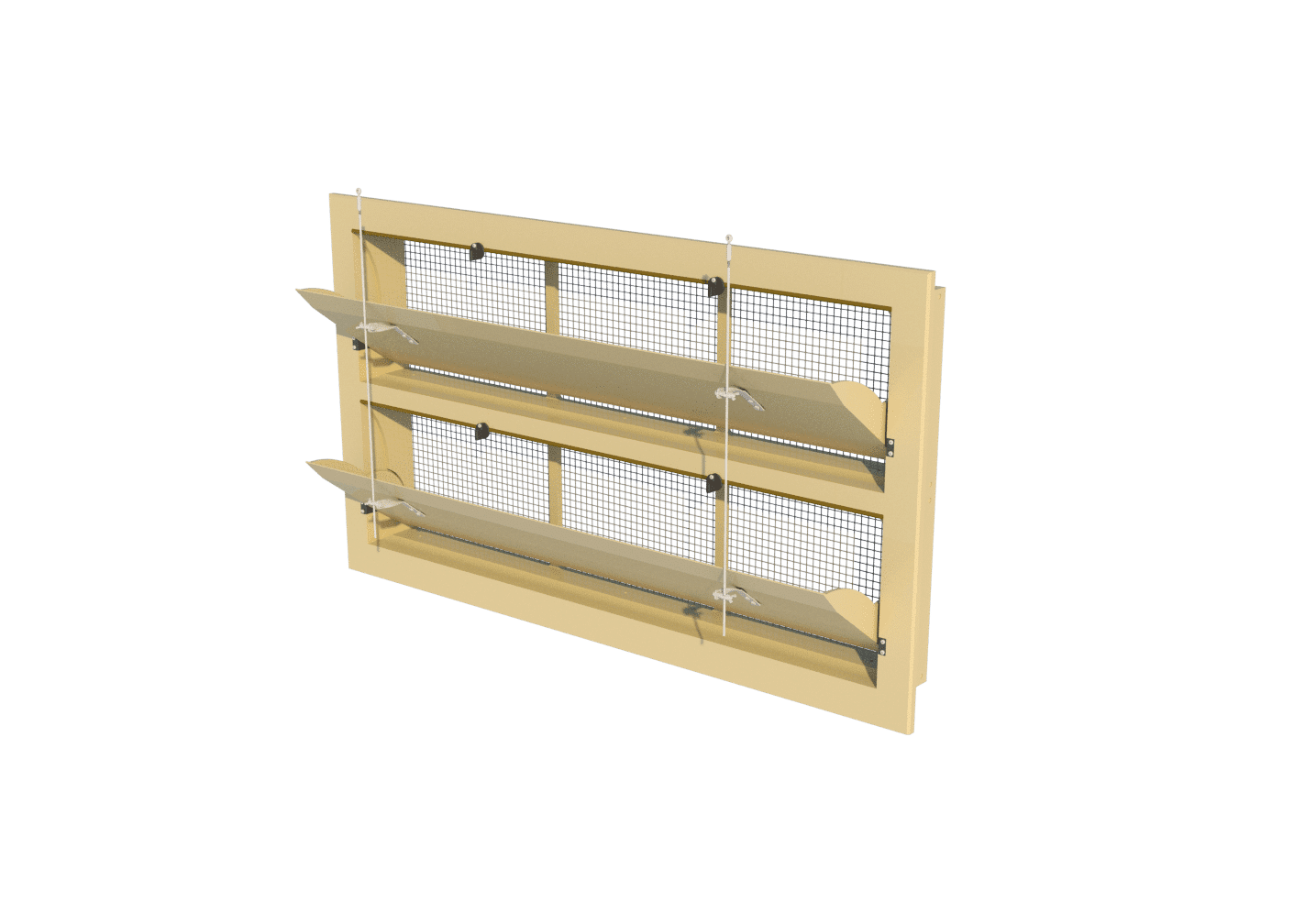 Wlot ze środkowym zawiasem. Ten wlot ze środkowym zawiasem został zaprojektowany tak, aby po otwarciu powyżej 35% umożliwić przepływ powietrza również pod wewnętrzną klapą. Dzięki temu strumień powietrza może być kierowany w dół, w stronę zwierząt, zapewniając efekt chłodzenia podczas maksymalnej wentylacji.