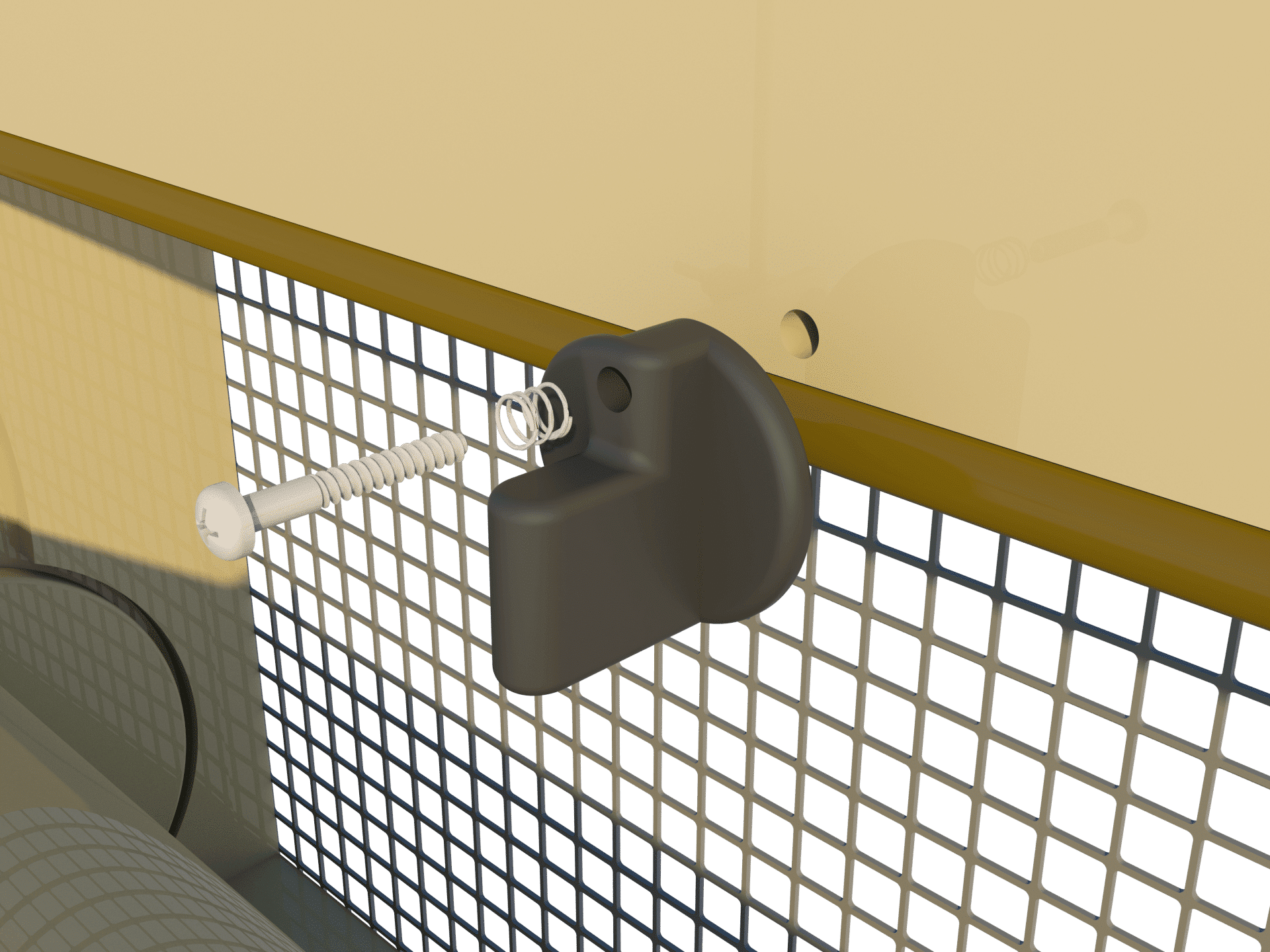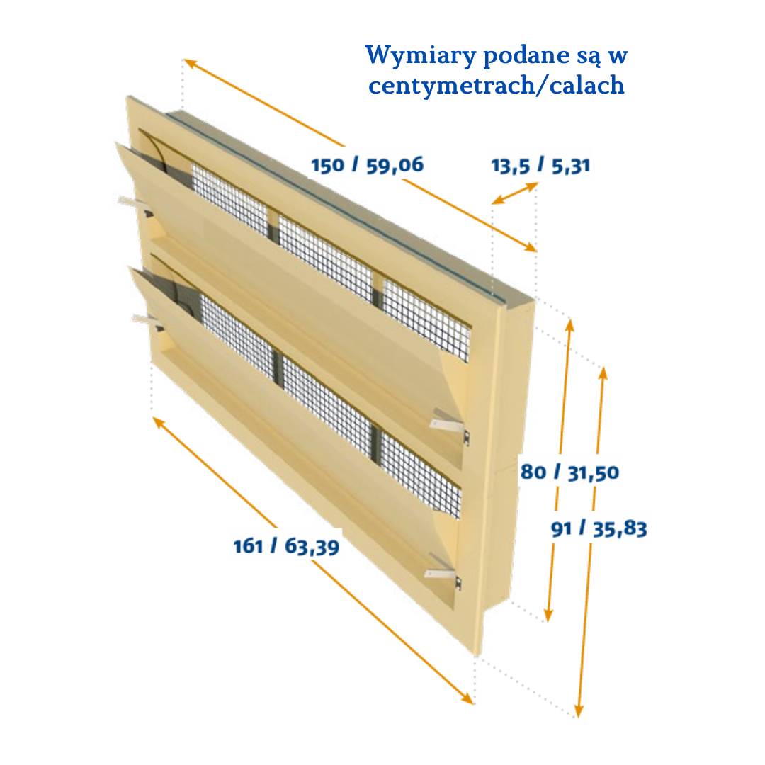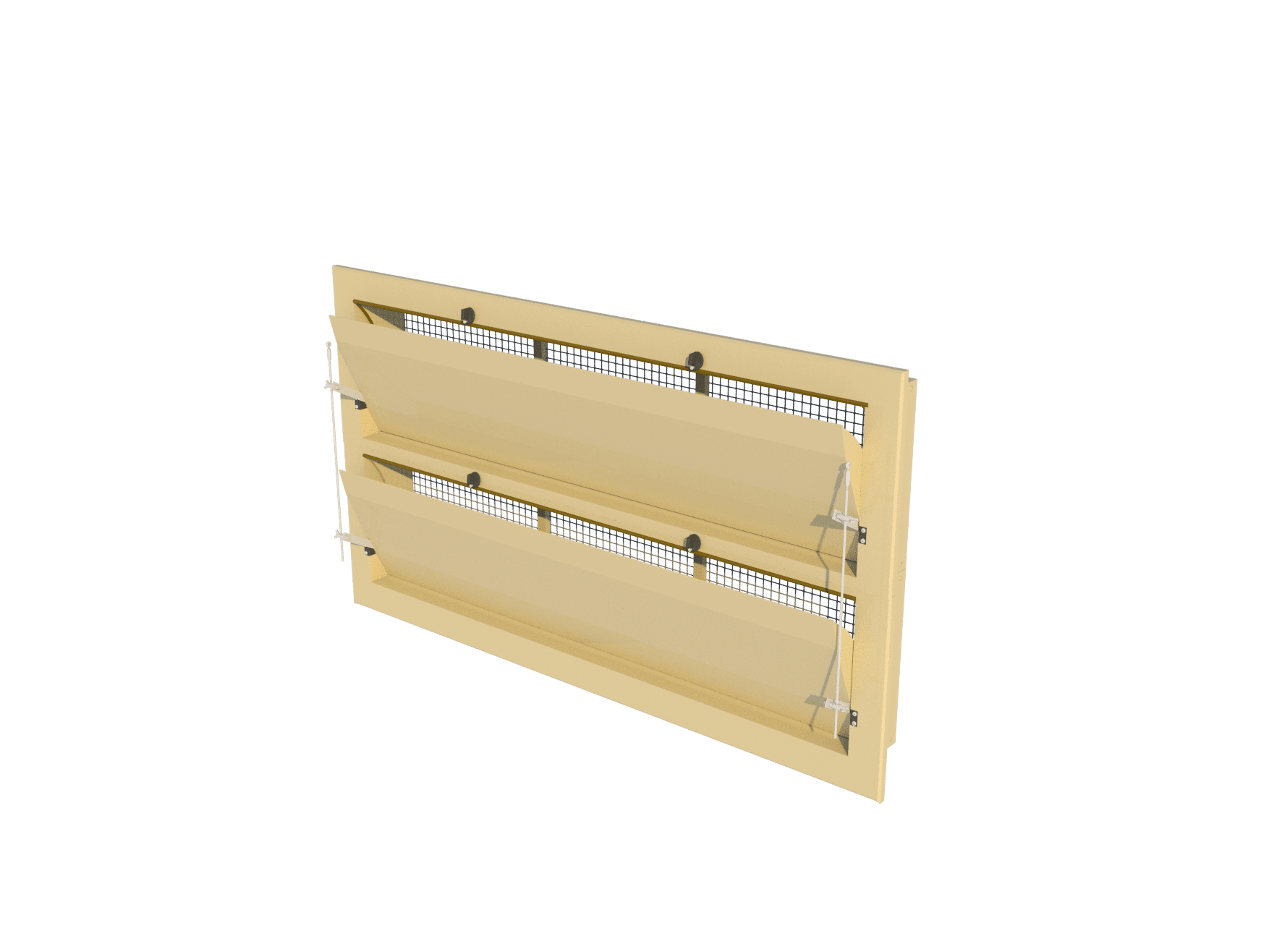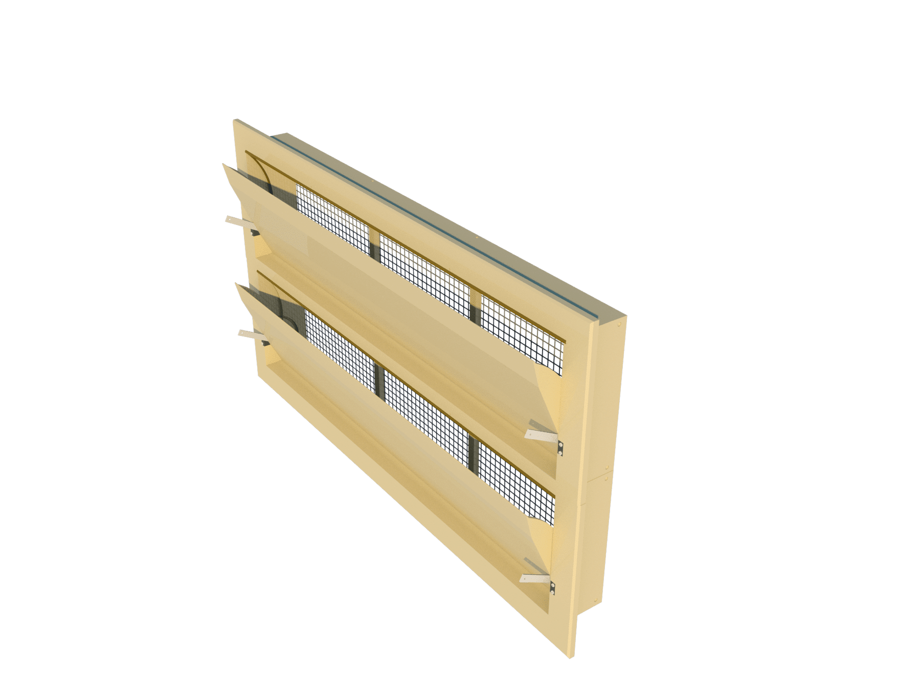 Wlot ze środkowym zawiasem. Ten wlot ze środkowym zawiasem został zaprojektowany tak, aby po otwarciu powyżej 35% umożliwić przepływ powietrza również pod wewnętrzną klapą. Dzięki temu strumień powietrza może być kierowany w dół, w stronę zwierząt, zapewniając efekt chłodzenia podczas maksymalnej wentylacji.