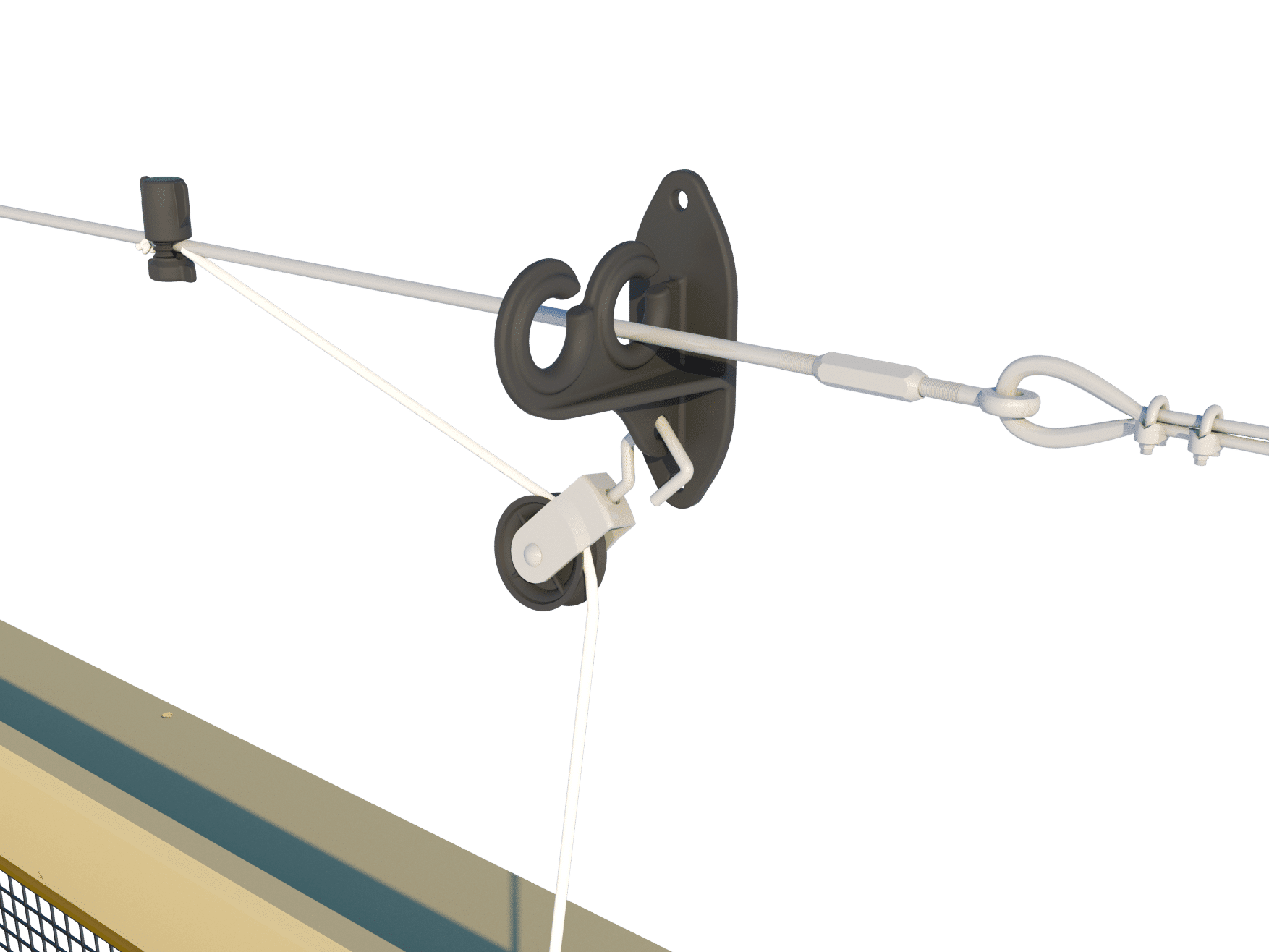 Praca z obciążnikami końcowymi lub sprężynami. Oferujemy dwa produkty, które mogą być stosowane do utrzymania napięcia głównej linki. Cylinder z PVC, który można wypełnić betonem lub piaskiem i używać jako obciążnik końcowy, lub sprężyna, która utrzymuje napięcie linki.