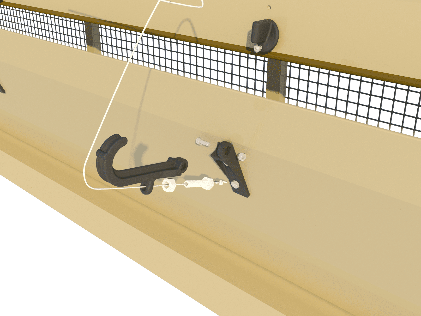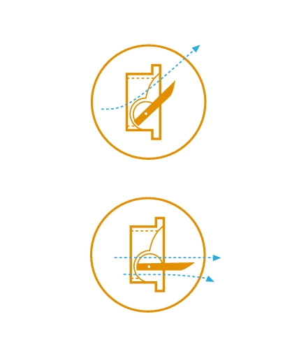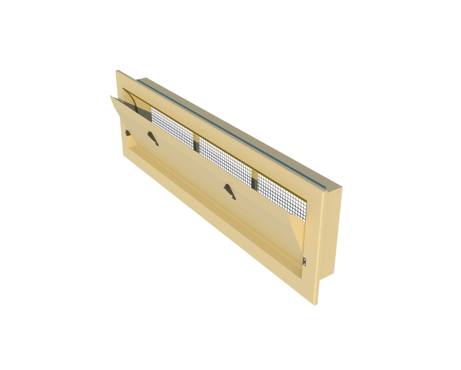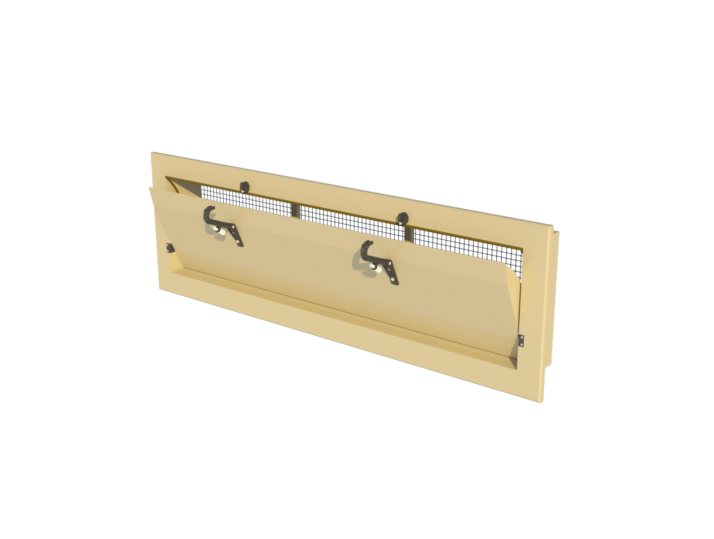 Wlot ze środkowym zawiasem. Ten wlot ze środkowym zawiasem został zaprojektowany tak, aby po otwarciu powyżej 35% umożliwić przepływ powietrza również pod wewnętrzną klapą. Dzięki temu strumień powietrza może być kierowany w dół, w stronę zwierząt, zapewniając efekt chłodzenia podczas maksymalnej wentylacji.