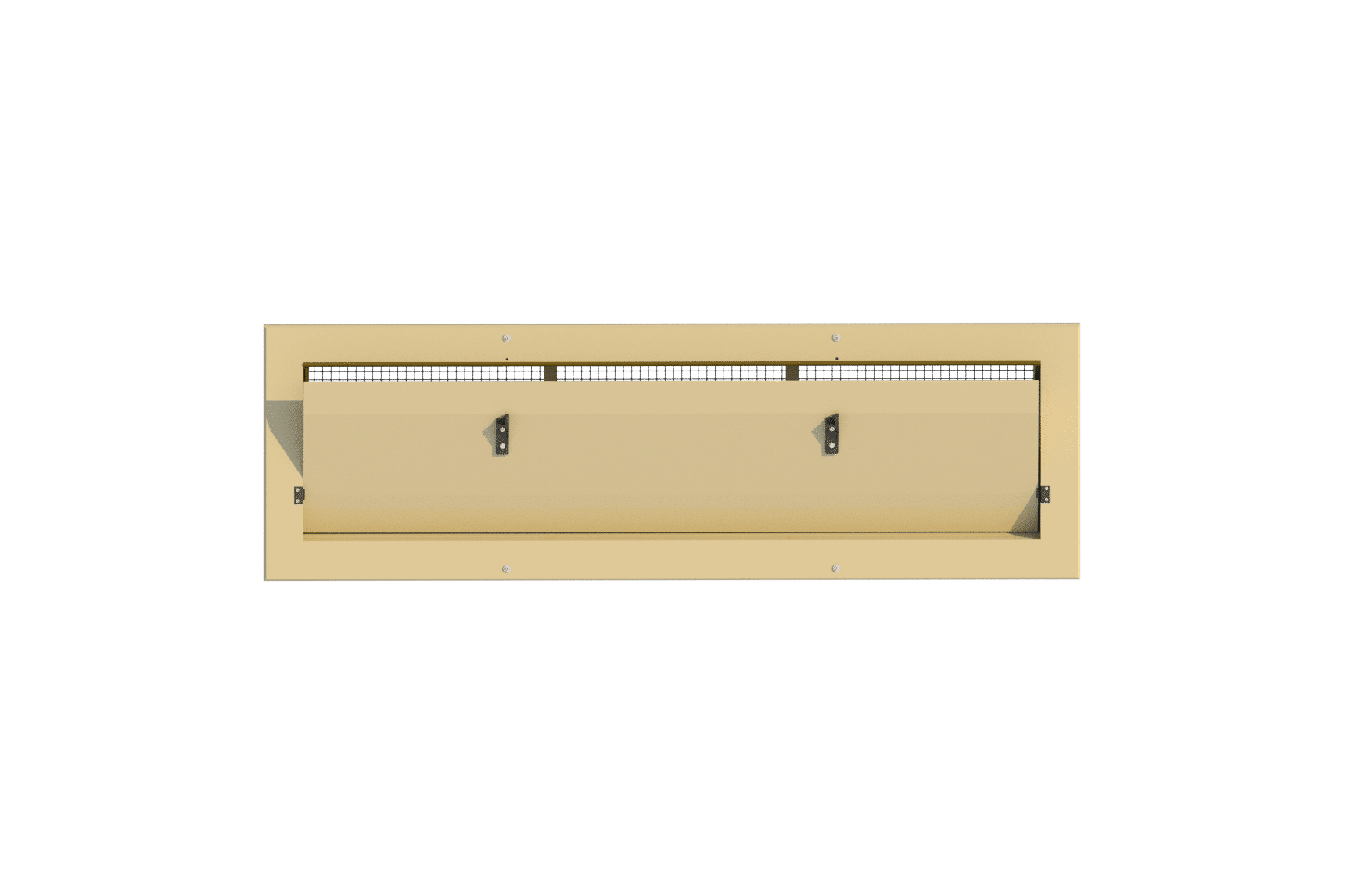 Prosta klapa wewnętrzna. Wlot jest wyposażony w prostą klapę wewnętrzną. Proste klapy kierują powietrze prosto w górę lub poziomo, nigdy w dół. Jest to idealne rozwiązanie dla pomieszczeń, w których podczas maksymalnej wentylacji powietrze nie powinno być kierowane bezpośrednio na zwierzęta lub nad nimi.