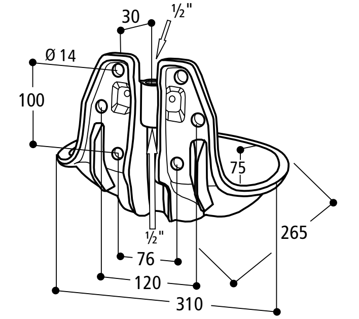 – Podwójna obejma mocująca (1 szt., art. 101.0179) do montażu poidła na rurze 1¼” – 2″