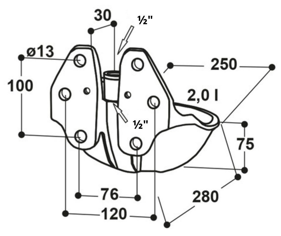 – Podwójna obejma mocująca (1 szt., art. 101.0179) do montażu poidła na rurze 1¼” – 2″