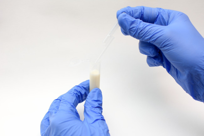 | Pobieranie próbki mleka | Nakładanie próbki mleka |